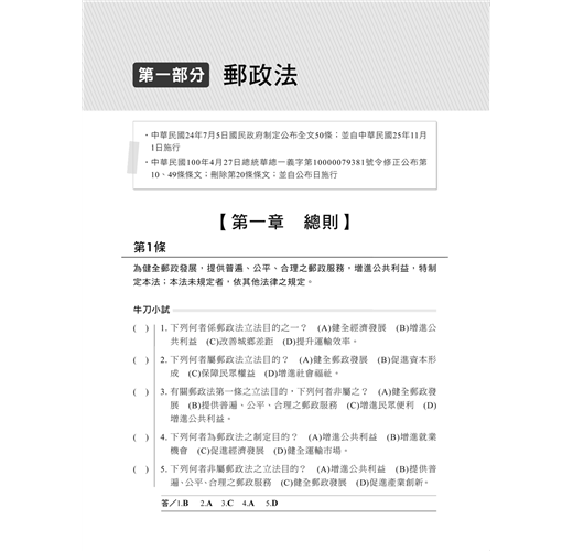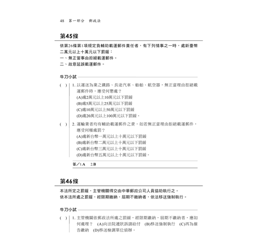 為協助考生能快速適應這種變化,作者精心編撰《勝出!外勤郵政法大意及交通安全常識條文對照式題庫》,其特色如下: