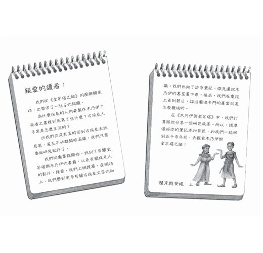 他們兩人針對本書的創作表示:「研究木乃伊與金字塔真是太有趣了。古埃及人真是令人驚歎,我們研究得愈多,就想知道更多。為了這本書,我們前往英國倫敦的大英博物館研究木乃伊、墓室壁畫,還有象形文字;也去美國紐約大都會博物館,參觀裡面珍藏的古埃及丹鐸神殿。雖然這本書已經寫完了,但我們這輩子對古埃及文明的興趣會永久持續下去。」