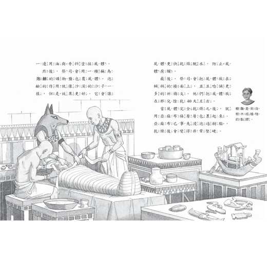 想不想知道什麼是「死者之書」?傑克和安妮變成古埃及的小孩是什麼模樣?快跟著他們一起來研究古埃及的世界!書裡有照片,有趣的故事和插畫,還有更多知識!