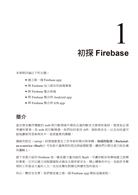 本書會先建立第一個Firebase app,並將它的服務整合到各種平台與環境,包括行動與網路app。接下來會探討Realtime Database與Firebase Storage,它們可讓你的使用者在各種裝備上輕鬆地存取資料。你會在閱讀各個章節的同時慢慢建立app的各個部分,包括以Firebase Rules保護資料,以及用OAuth驗證使用者。