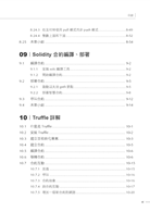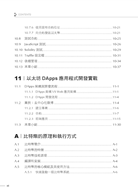 第二部分(第3~11章):主要說明了以太坊的基本使用、技術特性、工作原理、開發方法和專案案例。首先介紹了以太坊的各種核心概念——編譯、安裝、執行,以及私有鏈的架設和執行等基礎內容;其次詳細說明了Solidity語法、Solidity IDE、Solidity智慧合約的編譯部署,以及Solidity的智慧合約架構Truffle;最後說明了DApps開發的方法和流程。