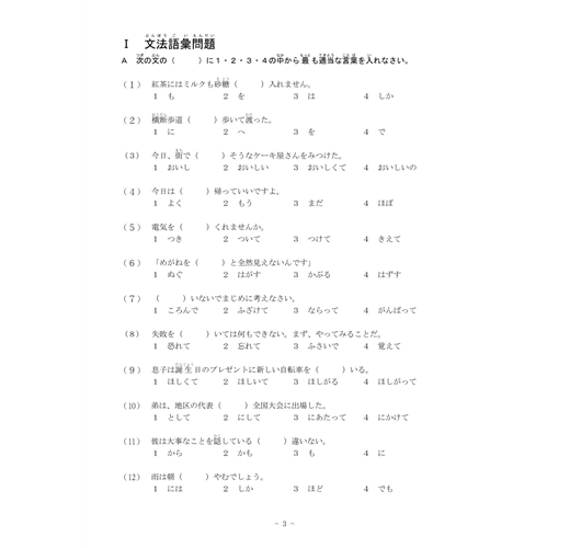 【 I 文(ぶん)法(ぽう)語(ご)彙(い)問(もん)題(だい)】