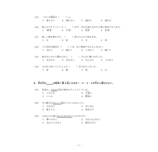 B つぎ次のぶん文の の意(い)味(み)に最(もっと)もちか近いものを1・2・3・4のなか中からえら選びなさい。