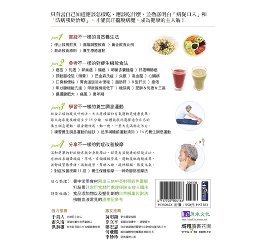 自從《不一樣的自然養生法》中文版上市以來,在台灣、香港、新馬地區乃至北美及世界各地華人地區,都獲得熱烈迴響,之後並再發行至中國大陸、泰國、韓國以及日本等地,讓我備感榮幸,也深刻感受到百萬讀者對健康的重視與殷求。