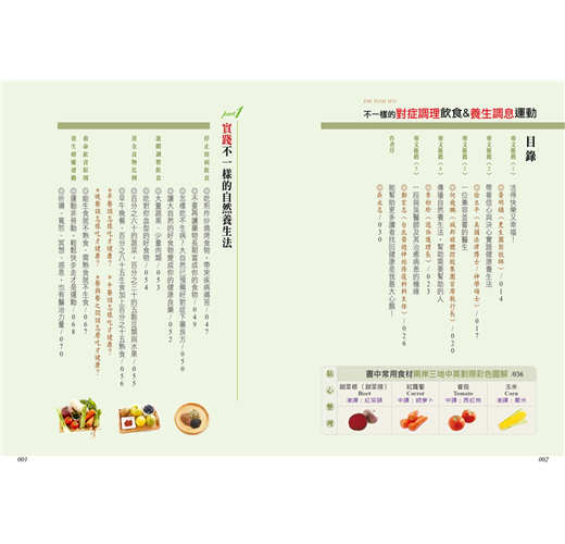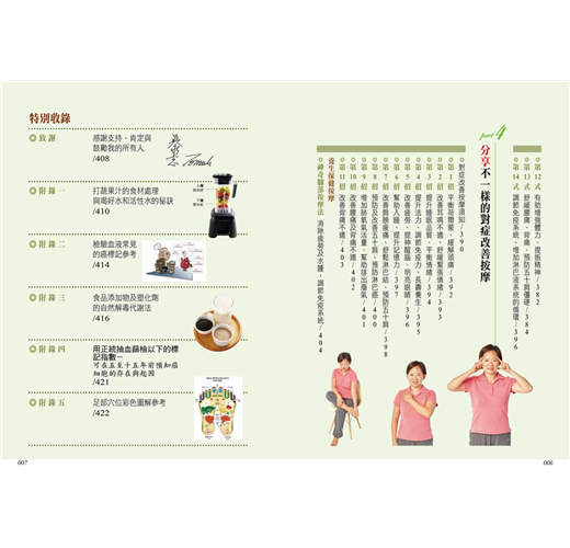 但不可否認,有更多讀者需要更多更詳細的健康知識,卻因我常在各地健康講座或指導、參與公益活動等未能及時回應,讓讀者心如熱鍋上的螞蟻!更有些讀者不辭辛勞遠途來中心希望我能幫忙!每每想到這麼多人渴望健康,便讓我感到心疼。我也因此下定決心抽出時間再出這第三本書。本書共有四個單元: