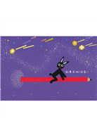 繁星滿布的夜空,流星劃過,小兔子要來「抓流星」啦!