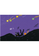 第三次抓流星,騎上滑板車,終於,抓到流星了!可是,流星太燙,燙得小兔子鬆了手……