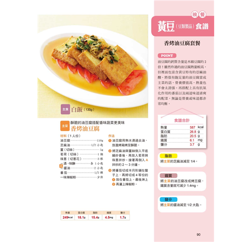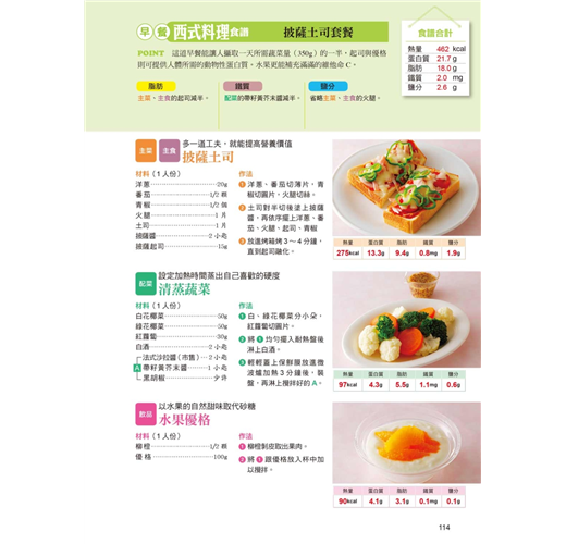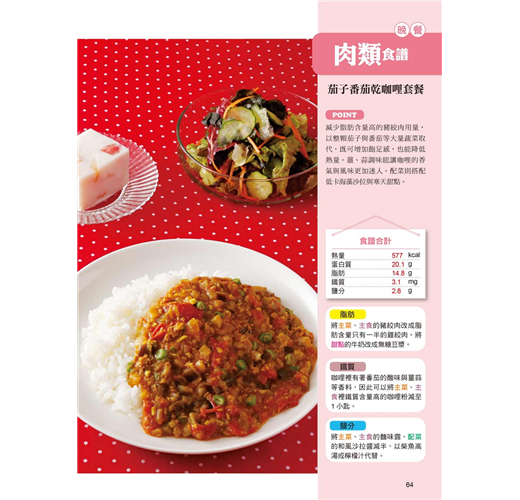 *因應不同的脂肪、鐵質、鹽分含量,詳細說明烹飪重點及調整方法,安心吃不怕攝取過量。