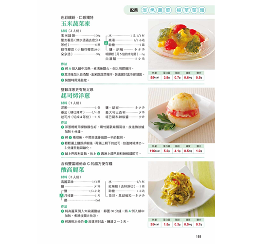 *提供62道主菜+63道配菜+20道湯品單品食譜,可依喜好自由搭配。