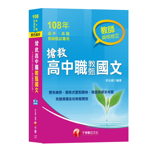 由於累積近六年的試題,增加不少新內容,造成書本頁數過多,因此本書將107年完整考題收錄於隨書電子書。此外為了不會有遺珠之憾,另外出版《搶救高中職教甄國文98~104年分章試題解析》付費電子書,內容蒐集104年以前各高中職學校的歷屆試題,以增加試題廣度。