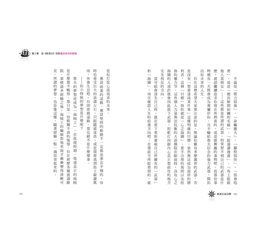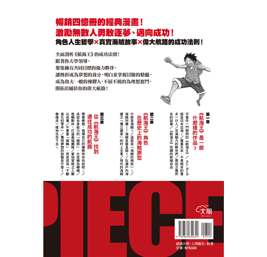 《航海王》就是一部魯夫朝著「成為海賊王」這個巨大的夢想不斷前進的故事,他在旅程中遭遇無數困境,也曾沮喪灰心,但到最後總會變得更加強大且振作起來。作者山田吉彥曾經只是個普通上班族,他正是從《航海王》中找到前進的動力,42歲在工作上受挫後,才開始轉而研究起「海賊」,並於46歲取得博士學位。