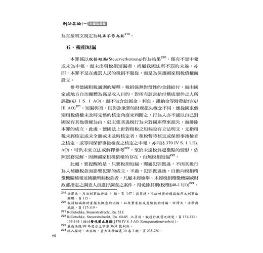 本書不但適合當配合上課學習與準備考試的教材,對於想要深入研究財產犯罪議題的讀者及實務人士而言,亦能發揮適當的指引功能。並且,與財產密切相關,卻規定在附屬刑法中的逃漏稅捐與洗錢,本書亦一併納入,以滿足讀者知識需求。