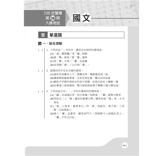 警專考試題型較深入複雜,除精研各科,觀念完整之外,實務的練習更是重要。千華名師獨家提供各科高分秘笈,讓讀者更能掌握方向,準備起來事半功倍!並隨試題附加精采詳解,完整提供出處、錦囊妙計、詳解、觀念延伸、難易程度,讓讀者從做中學,一看就懂,實力直線上升。