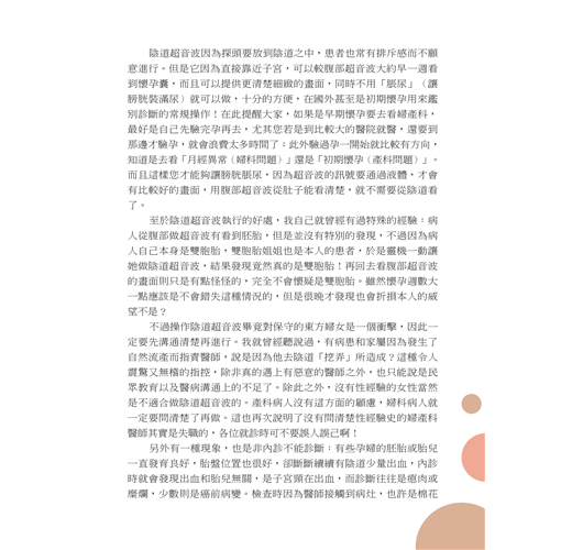 ---對於艱澀的婦產科情境,生動地運用各種譬喻,讓讀者輕鬆理解並得以釋懷