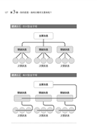 從關鍵訊息再往下一層,則是「次要訊息」。如果說關鍵訊息等同於章,那麼,次要訊息就是構成章的分段訊息(幾個段落形成一個分段,每個分段都有標題)。