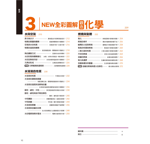 •《NEW全彩圖解觀念化學》適用八、九年級自然領域的化學課程。