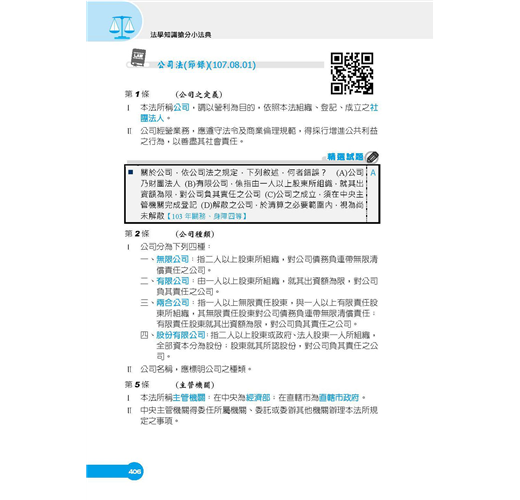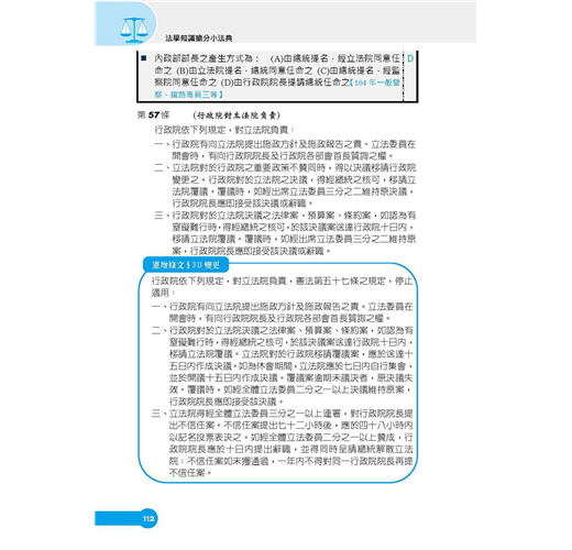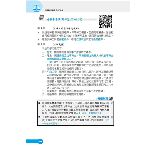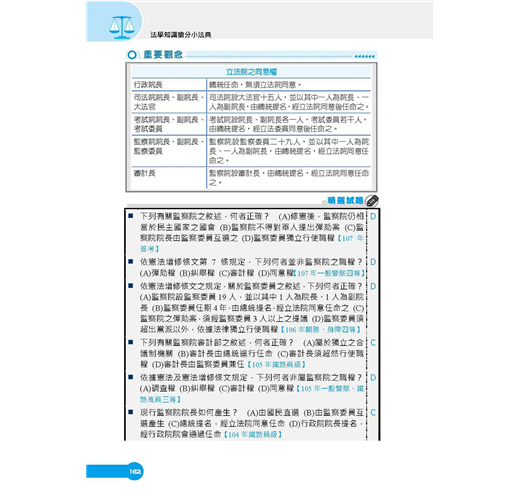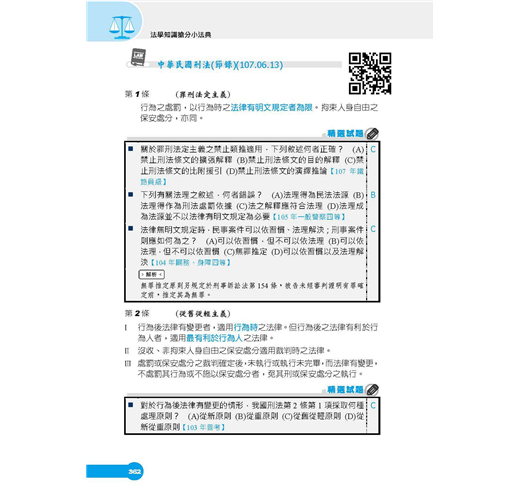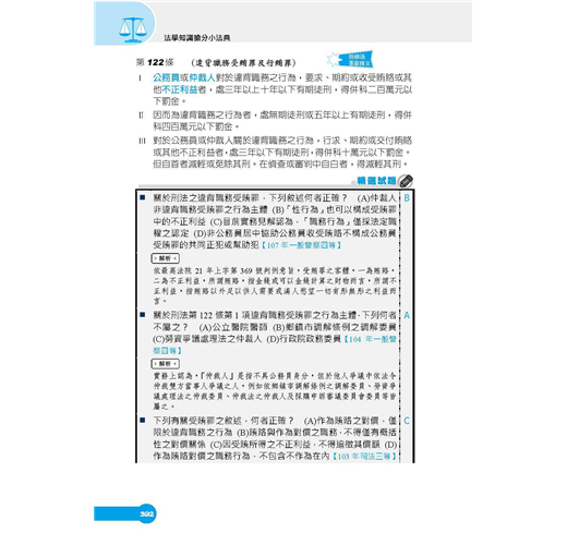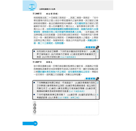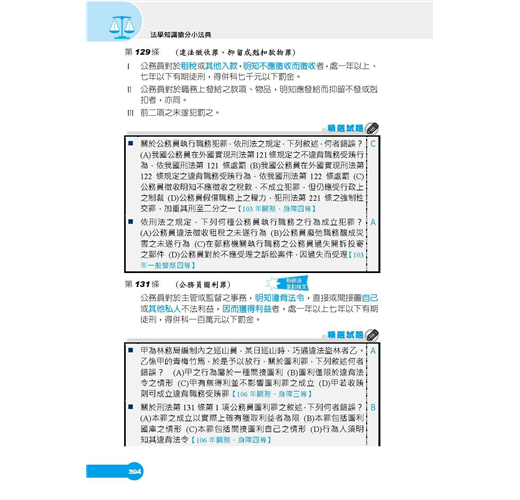 法學知識常以法政相關時事命題,法條內容常是出題的焦點,理解條文方能獲取高分,反覆熟讀複習更能提高得分率!
