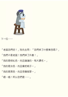 「我不是貓!我的圍巾不知道丟哪去了……它跟我爸爸的圍巾一樣,毛絨絨的。」