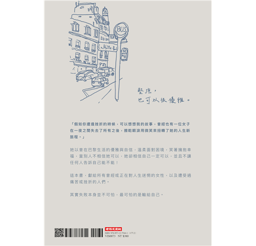 也可以很優雅。「假如你遭逢挫折的時候,可以想想我的故事,曾經也有一位女子在一夜之間失去了所有之後,擦乾眼淚用微笑來扭轉了她的人生新旅程。」