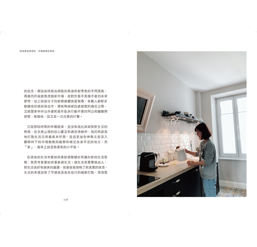 走出過往的名媛包袱,我開始著手認真看待生活基本需求,就是盡可能地簡單,從三餐的買菜、洗菜、切菜、聞著烹飪中的飯菜香,我聞出了這份真實的人間味,把情感與認知作為最好的養分與元素,從過去曾有的苦澀與甜美的生活經驗中,淬鍊出對生活的炙熱情感,進而對於重返市場獨立創業的想法,也有了更進階的決策──