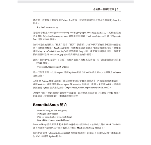 如果程式設計是魔術,那麼網站擷取當然是一種魔法。你可以撰寫簡單的自動化程式查詢網頁伺服器、請求資料、並解析所需的資訊。本書不只介紹網頁擷取,還包含擷取各種現代網站資料的詳盡指南。