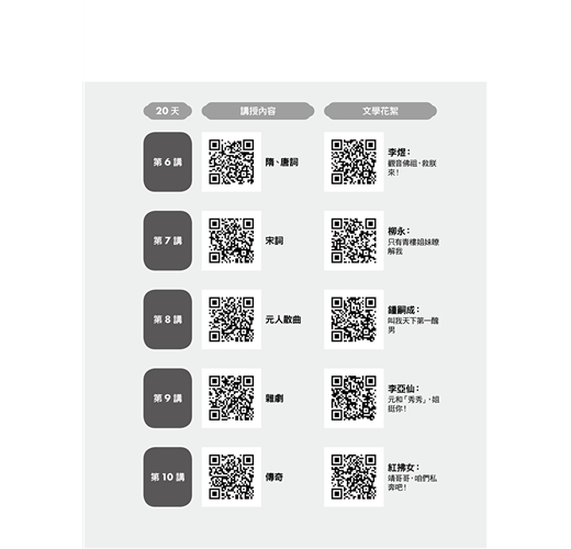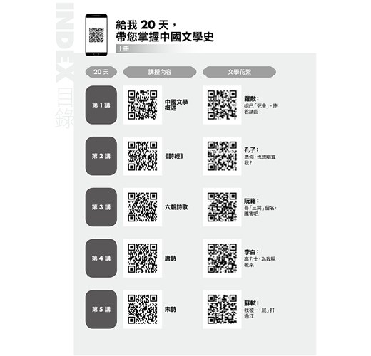 ◎附文青格格教學影片QR CODE,讓文青格格帶您掌握中國文學史