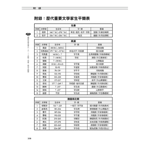 歷代重要文學家生平簡表