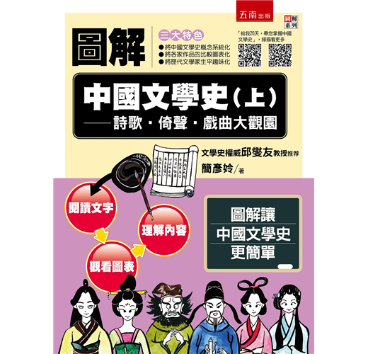 我自幼鍾情於中國文學,依稀記得從前準備碩士班、博士班考試時,有感於中國文學內容廣博、卷帙浩繁,便悄悄許下宏願:將來若能學有所成,定要擷取眾家之長,闡述師說,訂以己意,撰寫一部精彩、生動又好讀的中國文學史,以嘉惠廣大學子。兩年前,承蒙 五南圖書出版公司黃文瓊主編的邀約,讓我得以一償夙願;七百多個日子以來,課餘閒暇,案前燈下,埋首寫作,總算不負所託完成《圖解中國文學史》上、下二冊。