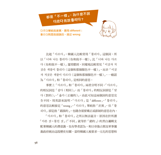 都是「不一樣」,為什麼不說「다르다」而說「틀리다」?