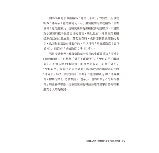 外語之所以有趣,是因為語言背後的文化背景。有因為時事發展出的新語言,也有因外來語大舉入侵而改變的說話習慣,甚至還有母語人士才可能得到的「語言癌」。如果你認為韓國人都了解韓語且使用正確的話,可就大錯特錯了!