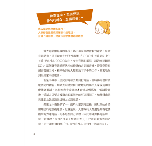 ――韓國人掛電話時為什麼說「들어가세요(您請回去)」?因為在電話還不普及的年代,如果要打電話或接電話,都要到村子裡有電話的人家使用電話,