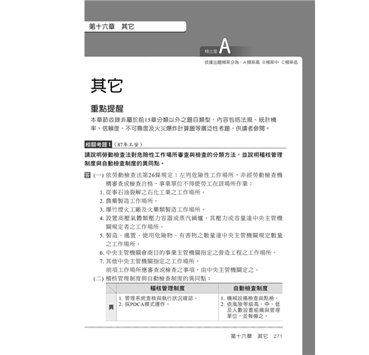 本書除了以系統化的方式將許多試題分門別類整理成章以外,在內容陳述上,更是以圖解、表格的方式呈現,相較於坊間常見的單純文字敘述,內容枯燥乏味,閱讀起來又抽象難懂,只能靠硬背的方式來記憶,而本書隨文加入圖表比對,讓你的概念更加具體,而圖表容易理解,不僅可完整建立知識體系,更有助於快速記憶與考前複習。