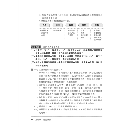 作者以自身考照經驗,統整歷年專技、高考的工業安全技師考題外,另收錄了許多相關的精選試題,試題含括範圍:計算題、解釋名詞、簡答題、問答題等各類試題,並由名師為你題題解答,省去自己四處蒐集考題與找尋解析的困擾,並能幫助你吸收相關概念,輕鬆掌握出題重點,遇到各類題型也能從容答題。