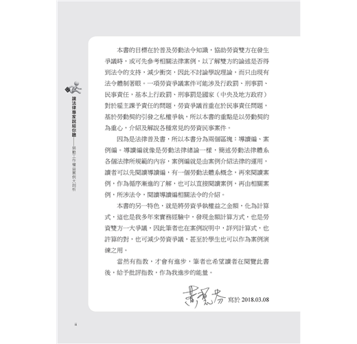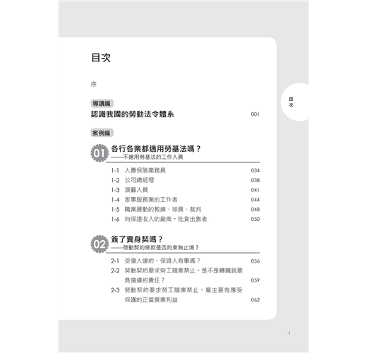 本書以「勞動基準法」為核心,涉及其他勞動法令為輔。【導讀編】針對有關的勞動法令進行簡介,【案例編】則採擷常見的案例,讓讀者了解勞資爭議的相關問題。