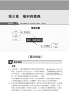 各章附有學習地圖可讓你按圖索驥,一望即知本章架構;重點精論則是將必考重點精華濃縮整理,打通你的學習思路,你可以輕鬆架構起易讀好記,建立清晰的觀念,進而掌握考試命題方向,而達事半功倍之效。