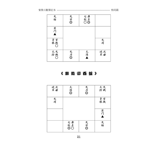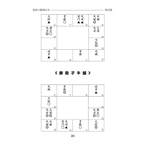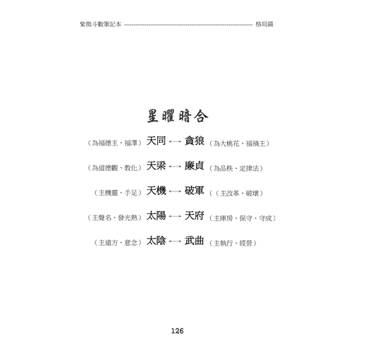 至於「紫微斗數筆記本.格局篇」是將十四顆主星與諸多副星的組合或碰撞,以命宮為例,作各種的細部說明與比較。