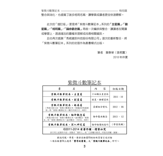 且也再次感謝「秀威資訊科技股份有限公司」這次的重新整合,將「紫微斗數筆記本」系列的封面作為套書模式出版。