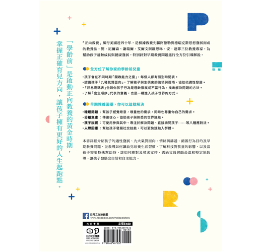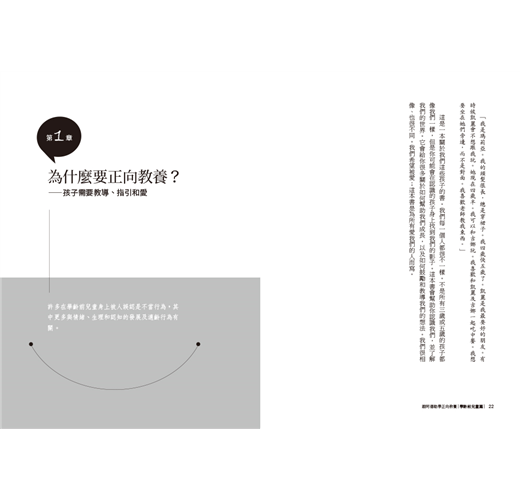 第一章就已經具體而微地把正向教養的精神,開宗明義地標舉出來。在後續其他各章,則相繼把細部的具體作法,配合學前幼兒獨特的需要,詳細地探討。