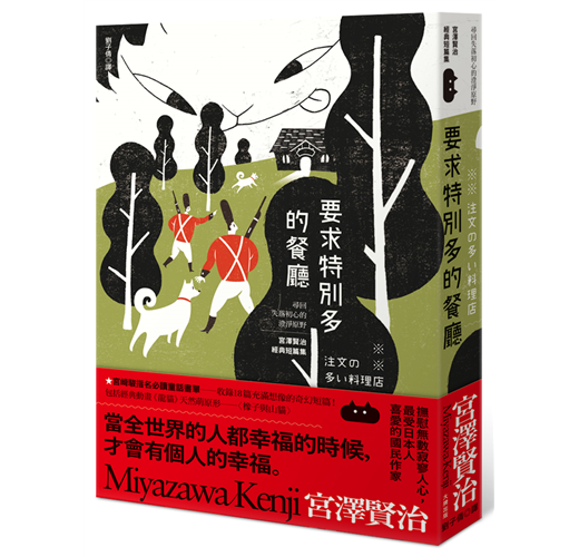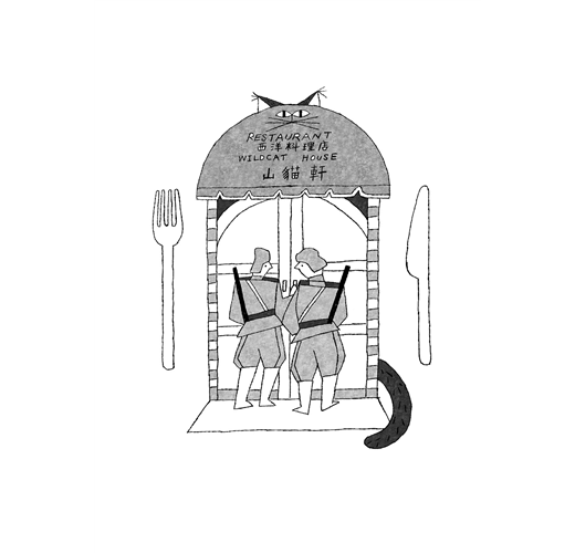 ★ 〈要求特別多的餐廳〉──隱藏在幽默底下嘲諷的黑色童話二個年輕紳士扛著發亮的槍,帶著二隻白熊似的大狗,正在深山裡樹葉茂密之處伺機尋找獵物,卻始終一無所獲。隨著天色漸暗,又冷又餓的兩人,竟在森林深處發現一棟氣派的西式洋房餐廳「山貓軒」。