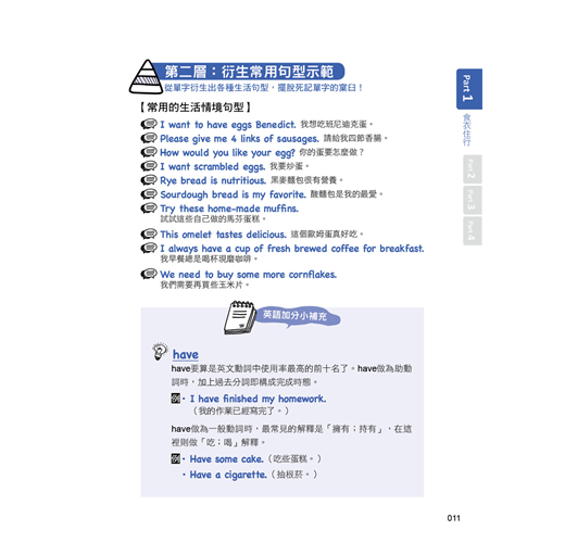 金字塔學習法顧名思義就是像金字塔一樣,一層一層堆疊起來,先從讀過+聽過單字(不必熟記),打好基底,然後透過各種實戰應用,漸漸蓋出完整架構,最後以練習與挑戰的方式一次攻頂,如此一來你的英文單字力就會達到不可思議的進步幅度,而且想忘都忘不掉!本書特別從「老外最常使用的單字」與「我們平時最頻繁接觸的情境」當中,嚴選出3000個最適合拿來打好金字塔基底的單字,並且搭配線上隨掃隨聽的MP3錄音,就是要讓你在出社會以後,還能上一堂真正時用的英文單字課!