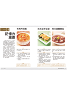 木瓜雜糧粥/茼蒿炒豆腐/青江菜蝦米豆腐羹/玉米鬚蘆筍鴨湯/冬瓜紅豆湯/葡萄芹菜汁