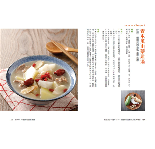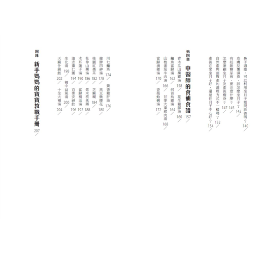 .最美味的中醫師食補食譜俗話說:「藥補不如食補。」對於坐月子的媽咪來說,飲食調養是不可或缺的項目之一,因為分娩造成的虛損,要靠飲食的調理來療癒。彭醫師將24道私房食補食譜大公開,像是針對發奶的青木瓜山藥雞湯、花生豬腳湯,針對瘦身及補血的山楂番茄牛肉湯,道道養生、道道美味。