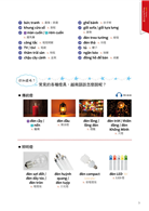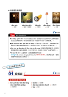 圖解設計,要如何最詳細?例如:一開始一定會學過燈的單字是「đèn」,可延伸出了解路燈是「đèn đường」,那進一步再把燈細分成「夜燈、吊燈、立燈、手電筒」等等,目前的學習,你分得出來嗎?傳統的學習讓你好像學了很多,但生活中會用到的單字卻總是零零落落,這個不知道、那個不清楚。但是本書在類似的單元中,以上述為例,對照的中文自當不在話下,其燈項多會以加入圖片以供讀者一看便知。全圖解另有其他的好處,例如:越南語單字翻成中文之後,有些詞難免有落差,但是坊間的單字書,礙於版面或是因文化背景的不同而難以解說,往往都把字義縮減成最簡單的字面解釋。但不知道單字的差異性就隨便亂用,只會打壞你想要用越南語表達的美意,因為你說出來的越南語只會讓越南人聽了一頭霧水!而全圖解的學習可以清楚避免這種窘境。