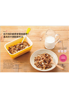 什錦穀麥以穀類為主要材料,因此含有豐富的碳水化合物、蛋白質等成分,當成主食可說是擁有充足營養素的食材。這本書中的手作什錦穀麥食譜,整體而言都是低熱量的。可以自由調整甜度也是其優點,想要減肥時就可以製作不甜的什錦穀麥。