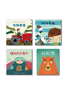 幼兒閱讀起步繪本套書(二)共四本:《恐龍農場》、《跟屁蟲狐猴》、《樵夫的大鬍子》、《盯盯熊》