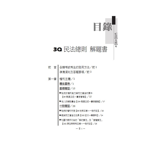 適用對象 欲報考國考各類科考試並對於民法總則題庫深入研讀的考生