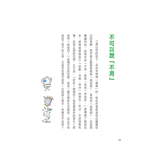 比方在孩子洗杯子時,您想提醒他留心別打破杯子,那麼,在談話時就不能一再重提他之前打破的經驗,您只要稍加叮嚀一次就放心讓他去洗吧!