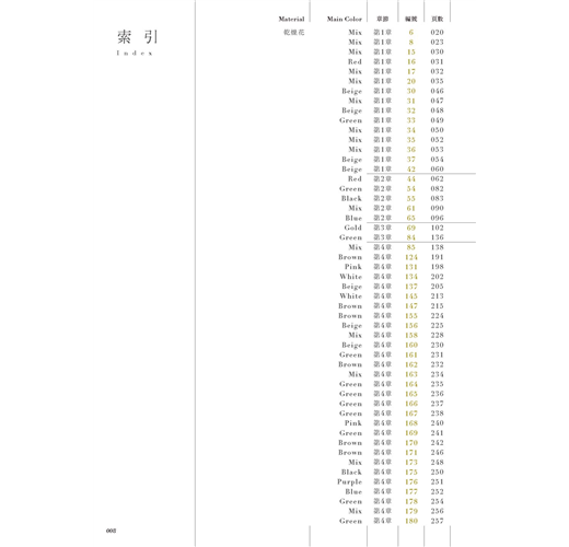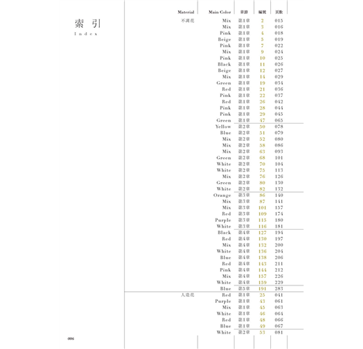 不同的異素材花卉搭配性很高,不管是不凋花與人造花的組合,還是人造花結合乾燥花,甚至是將三種花材全部搭配在一起,這些混搭應用的方式都非常引人注目。為了有效運用各個素材,先熟悉這些花材各自的特色,就能使設計更加生動。本書蒐羅了200款異素材花藝設計,當需要創作靈感時可以多多翻閱,找到更多設計的可能性!
