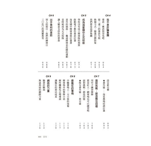 一如本書的作者弘宇,在追夢的過程中,不僅靠熱情、毅力、勇氣與自信感染周遭,更多的,是他端出企劃力與執行力來說服他人,邀請每一個原本可能僅在場邊觀望的人,加入他追夢的賽局中;過程中,弘宇懇實地回應支持者的期待、要求,同時,也樂於把勝利的榮耀與成果,分享給大家,在在都展現了他的領導力與責任承擔,吸引、激勵了更多的人,來共同完成他的夢想。