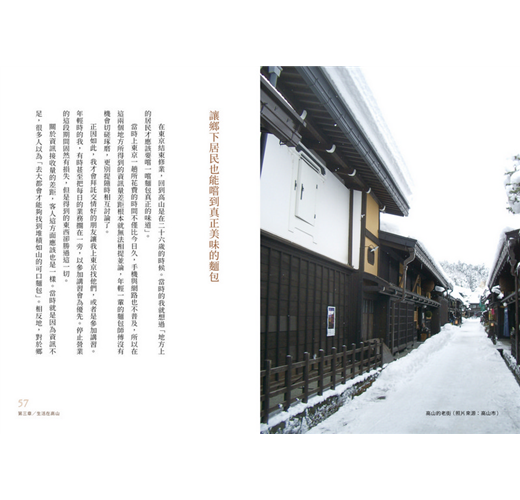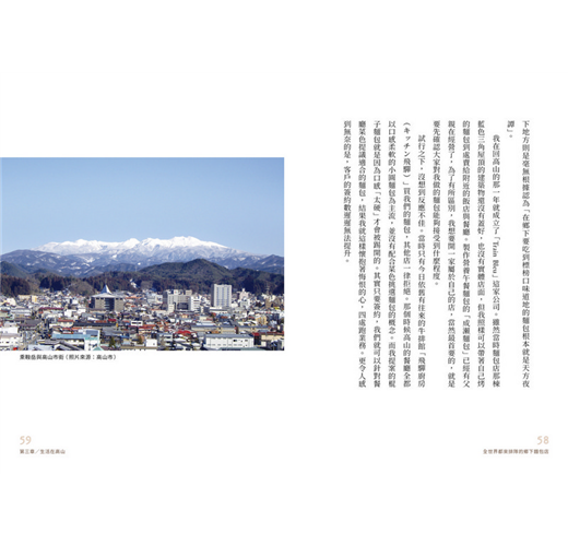 高山市在2005年經過市鎮村合併之後,成為日本全國面積最大的市,而且面積大小幾乎與東京都相同。舊高山市保留了不少古老街道,其他地區更是綠意盎然。冬天深雪覆蓋,客人當然就會減少,因此開店前先鏟雪就成了每日功課。盆地地形的高山市是一個四季變化豐富的地方,雖然冬季寒冷,夏季炎熱,不過春季百花盛開,秋季楓葉豔麗,只要來到這裡,就能夠盡情體會日本風情。不僅如此,最近還有不少外國觀光客到此一遊呢。